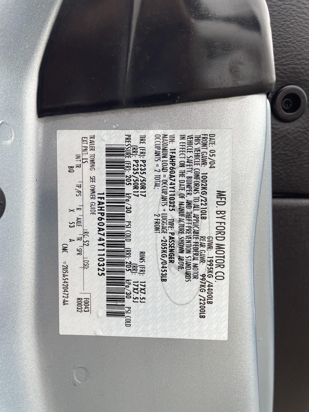 - 1FAHP60A74Y110325