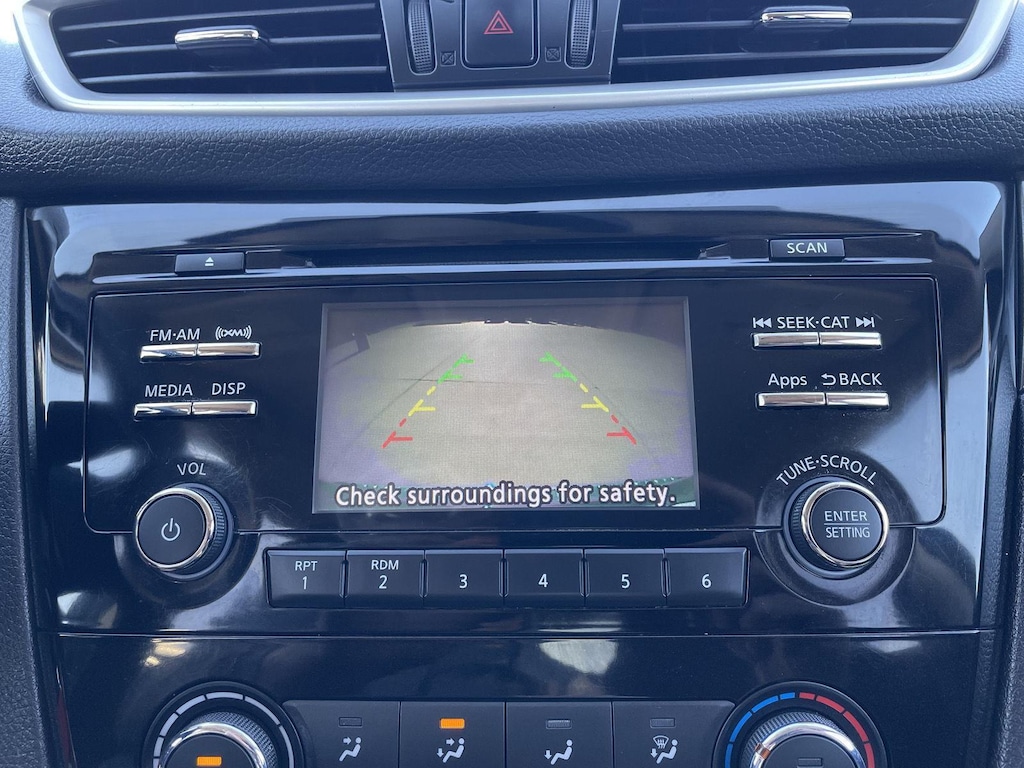 - The vehicle is equipped with a camera that displays an image of the area behind the vehicle on an interior display.